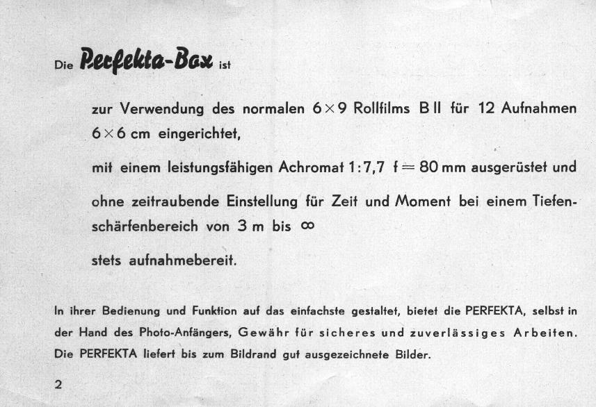 - Perfekta Box-Kamera 6x6Perfekta Box Bedienungsanleitung