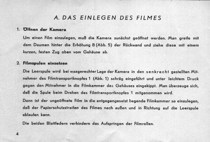 - Seite 4 A. Einlegen des Filmes. 1. Öffnen der Kamera. 2. Filmspulen einsetzen.