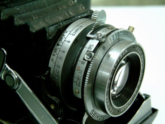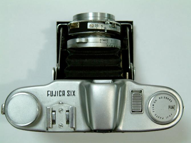 Auch in Japan gab es ein großes Angebot von Klappkameras in verschiedener Qualität. Die Fujica Six ist eine 6x6-Kamera, vermutlich aus den 1950er Jahren. Das typische Design, das der Kamera auch geschlossen und von oben ein unverwechselbares und markantes Erscheinungsbild verleiht, folgt dem allgemeinen Geschmack, der japanische Industriegüter jener Zeit prägte. Das Objektiv ist ein Fujinar 1:3.5 f=7.5cm. Die Kamera ist von hervorragender mechanischer Qualität; die Entfernungseinstellung erfolgt nicht mittels Verstellung der Frontgruppe, sondern durch Verstellung des gesamten Objektivs. Der Verschluß von Seikosha hat als kürzeste Belichtungszeit 1/500sec.