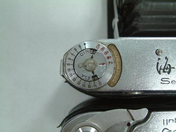 Um die Auslöseverriegelung zu realisieren, wurde der Filmtransportknopf der Isolette II von der linken auf die rechte Seite verlegt.