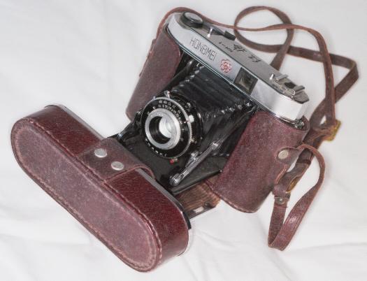 Die Hongmei ist eine chinesische 6x6- und 6x4,5-Kamera, Format umschaltbar über fest eingebaute Umklappmasken. Mit 7,5cm-Objektiv 1:4,5, Synchronbuchse und Durchsichtsucher. Entspricht, vom fehlenden Meßsucher abgesehen, weitgehend der Agfa Super-Isolette. Verfügt über einen bei diesem Kameratyp seltenen Schnelltransporthebel (aber kein Zählwerk, Transportkontrolle über rotes Fenster). Hier nur aufgeführt, um die internationale Verbreitung dieses Kameratyps zu demonstrieren. Hergestellt in Changzhou, China, wurde sie in Deutschland eine Zeitlang von Neckermann vertrieben. Das rote (chin. hong), fünfblättrige Logo stellt eine Pflaumenblüte (chin. mei) dar, in deren Zentrum sich ein Kameraverschluß befindet. Diese Kamera wurde allerdings in China erworben. Gelegentlich bekam man diese Kamera auch mit einer robusten Bereitschaftstasche.