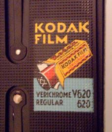 In den 20er Jahren gab es noch eine Reihe anderer ulkiger Rollfilmformate (828, 820, 620 - letzteres ist gleich 120, bloß andere Spulen mit schlankeren Abmessungen; oben 120, unten 620), die alle Breiten zwischen ca. 5 und 7 cm hatten, aber heute praktisch nicht mehr zu bekommen sind. Bei so alten Dingern muß man immer nachfragen, ob die betreffende Kamera wirklich für Rollfilm 120 geeignet ist. Manchmal ist der Filmtyp irgendwo in oder an der Kamera angegeben. Bei deutschen Kameras steht dann aber eher der entsprechende Agfa-Typ (obige Filmbezeichnungen stammen von Kodak) drin, bei 120er Film evtl. die (übrigens in D genormte) Bezeichnung 'B II 8'.