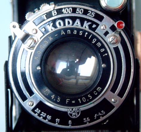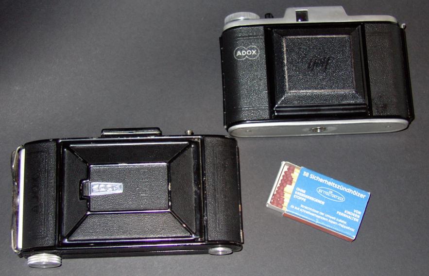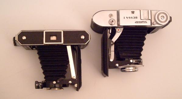 Vor allem diverse Kodak-Modelle, wie die Kodak Vollenda 620 mit Kodak Anastigmat f=1:4,5 F=10,5cm, haben diese merkwürdigen Filmformate verwendet, daneben auch einige französische und englische Modelle, die aber alle ein ähnlich breites Qualitätsspektrum besetzten wie deutsche Kameras. Der einzige Vorteil des 620er Filmformats ist die etwas schlankere Bauweise der Kameras, wie hier im Vergleich zwischen einer Kodak Vollenda 620 (links) und einer Voigtländer Bessa I (rechts) zu sehen ist.