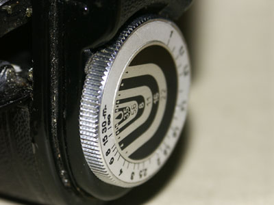 Klappfilter ähnlich der Bessa RF, jedoch fest angeschlagen. Die Kamera verfügt außerdem über eine Schärfentiefeskala.