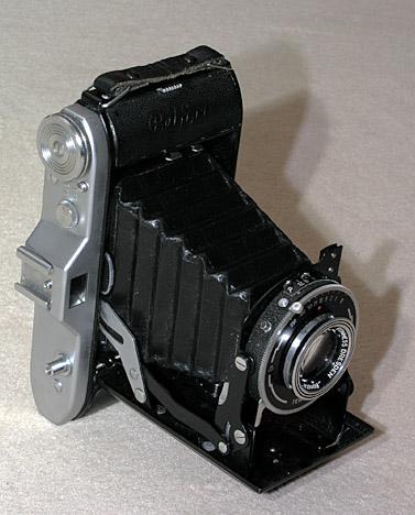 Belfoca, 6x9- und 6x6-Kamera (umschaltbar) aus DDR-Produktion. Mit vergütetem 105mm-Meritar und Tempor-Verschluß mit acht Zeiten und B; außerdem Synchronbuchse für Blitzgerät (auch mit anderen Verschlüssen und Objektiven zu finden). Bei dem abgebildeten Modell fehlt der Brillantsucher; dieser ist einsteckbar und kann bei Bedarf entfernt werden.