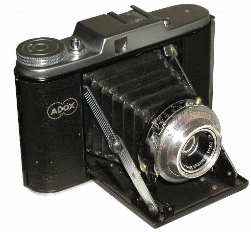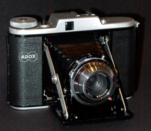 Eine Variante der Adox Golf (Photo Roman Rohleder) ist mit einem Adoxar 4,5/75, vergütet, Pronto, B,25,50,100,200, f6,3-22, Selbstausloeser und Doppelbelichtungssperre ausgestattet.
