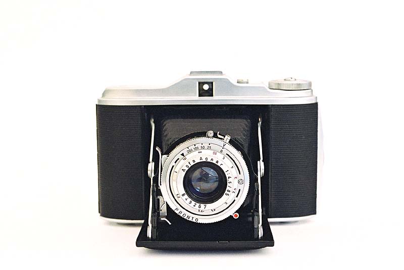 6x9, verschiedene Ausführungen mit Agnar 1:6,3/105 oder Agfa Anastigmat 1:7,7, Pronto- oder Vario-Verschluß mit den Zeiten 1/25 bis 1/200. Alter unbekannt. Gilt als das Einstiegsmodell von Agfa. Die beiden Abbildungen stammen von Stefan Nützel. Die Kamera gab es auch mit Bereitschaftstasche.