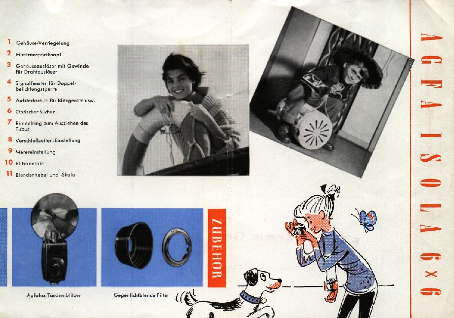 Agfalux-Taschenblitzer, Gegenlichtblende, Filter.